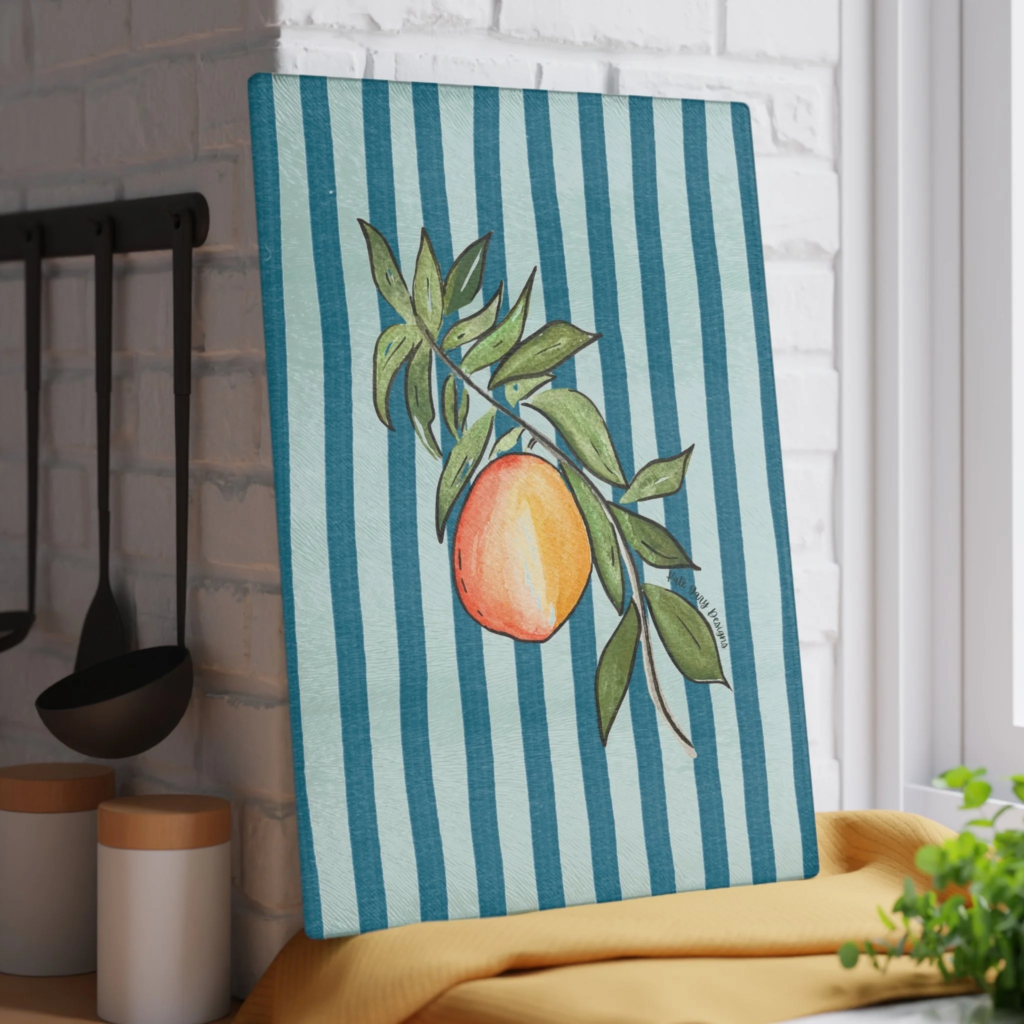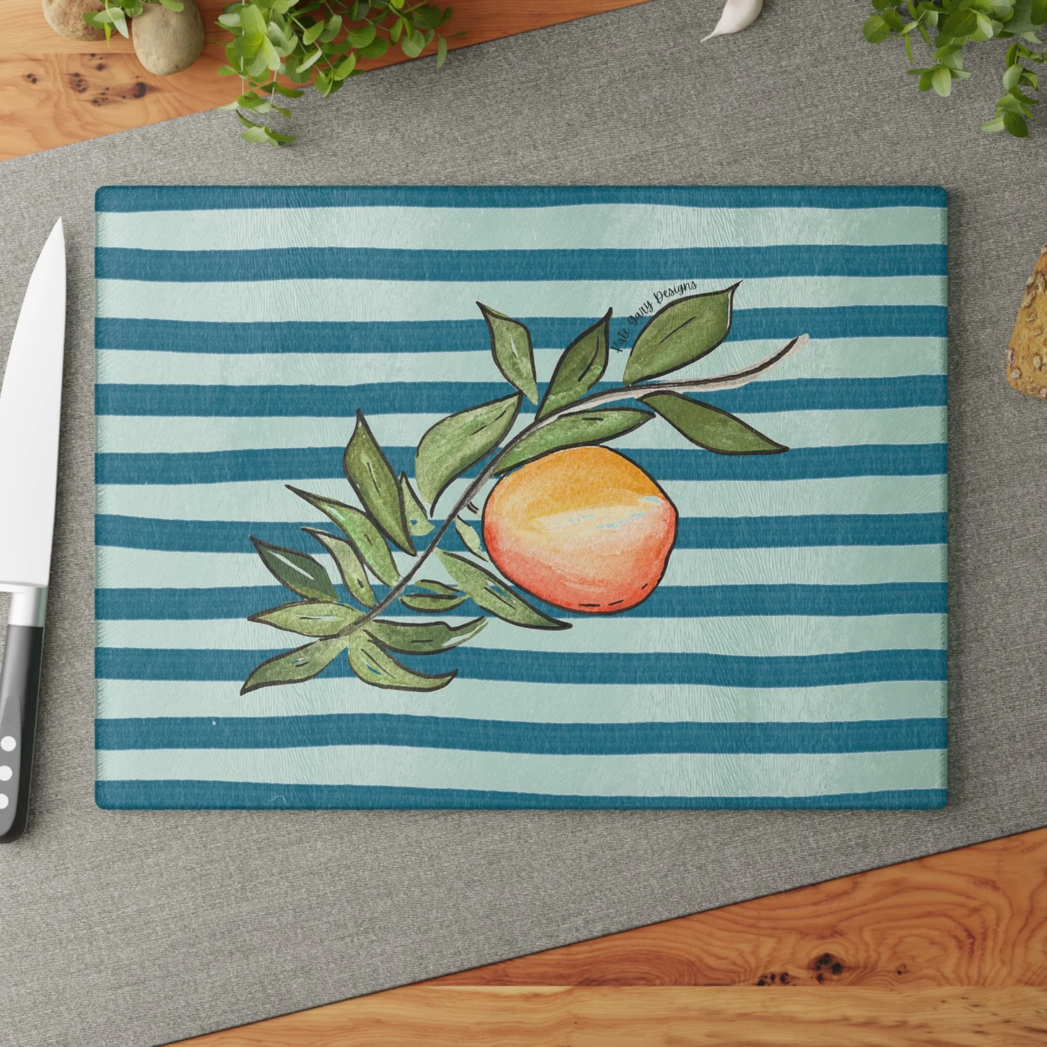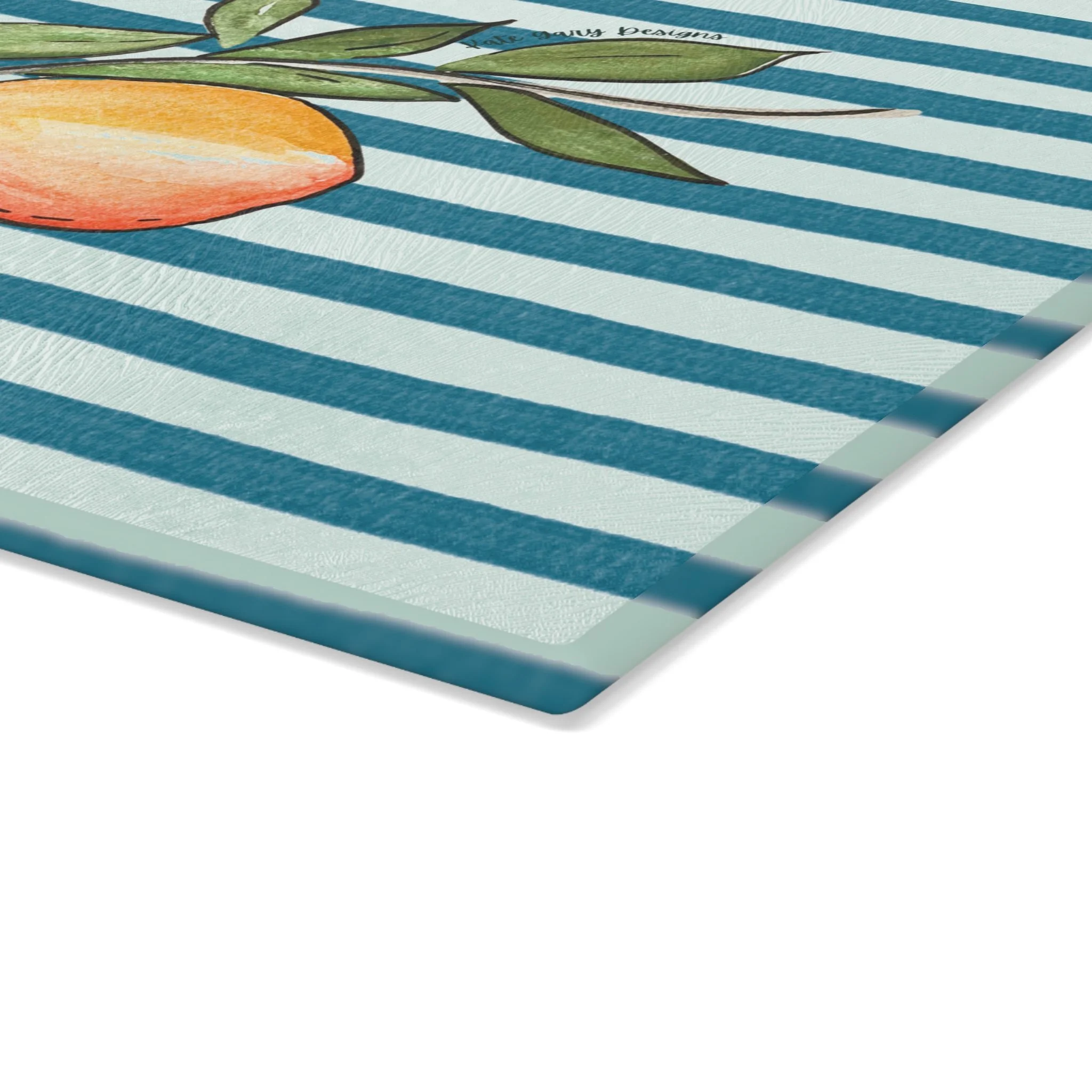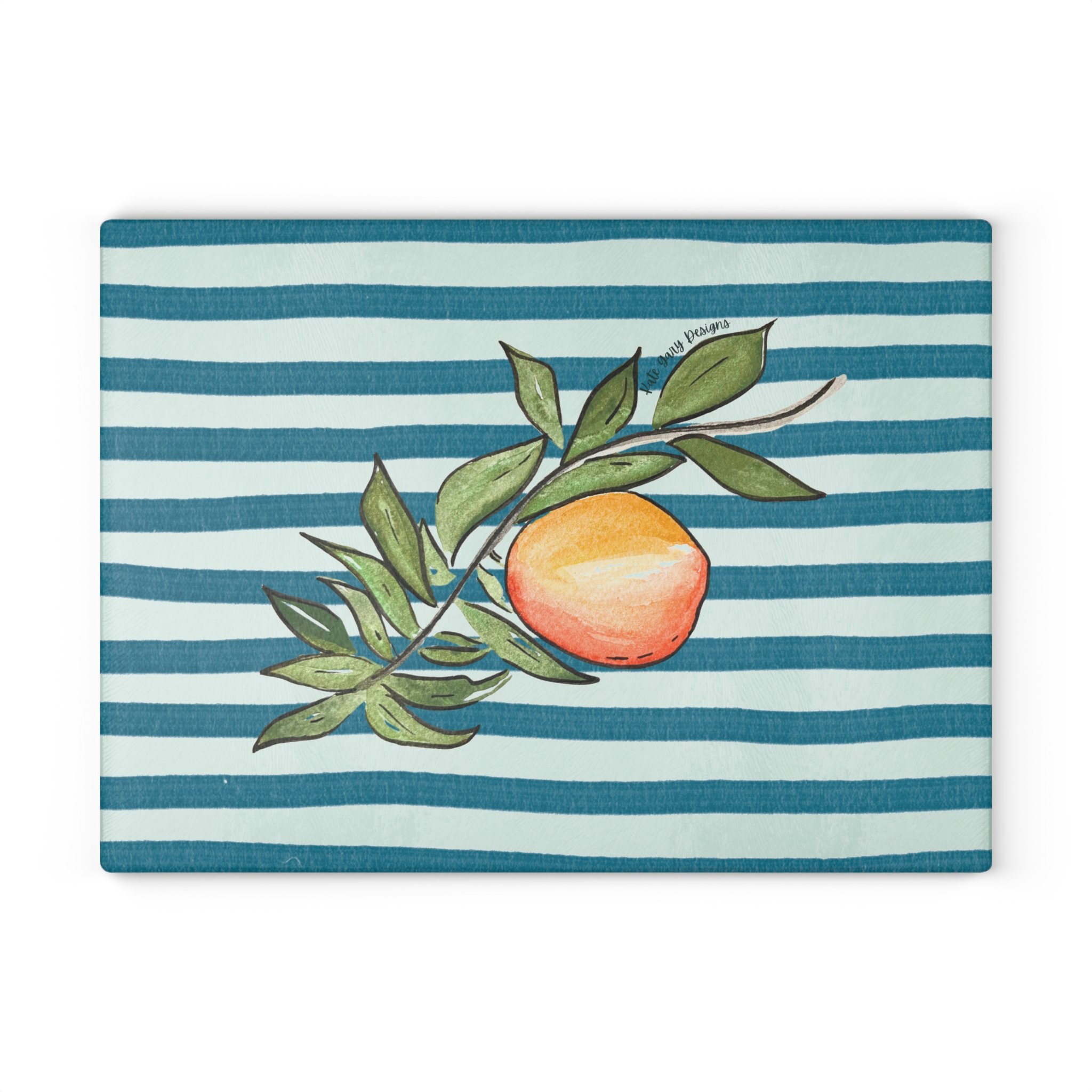 Bring a touch of character into any kitchen with this glass cutting board with Kate Gary's unique Peach design. Its tempered glass material is robust and helps prepare many a tasty meal for a long time to come. The textured surface makes it an ideal chopping, slicing, and dicing area.